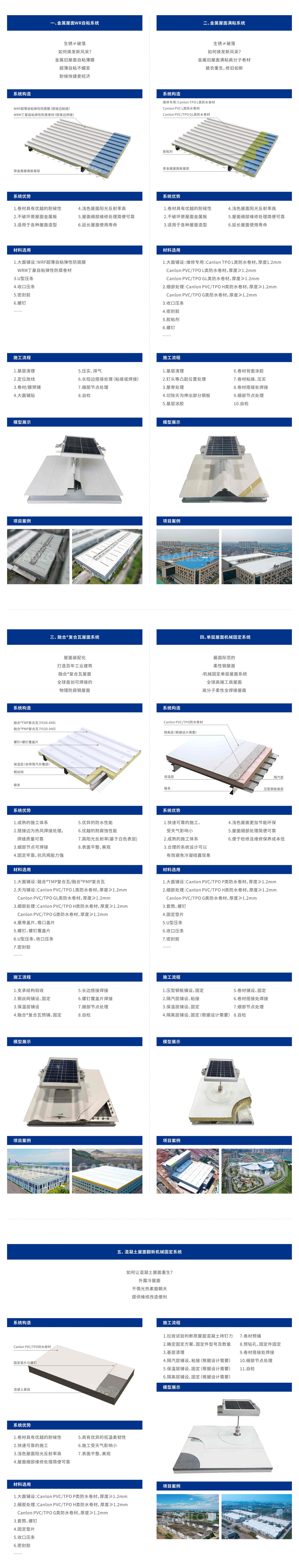 凯伦单层屋面系统,根据不同的屋面基层情况提出相对应的屋面防水解决方案,作为防水行业系统化服务商,我们一直把绿色、环保作为企业的精神旗帜,在研发、生产和技术服务的过程中身体力行,用行动推动屋面防水材料的发展。